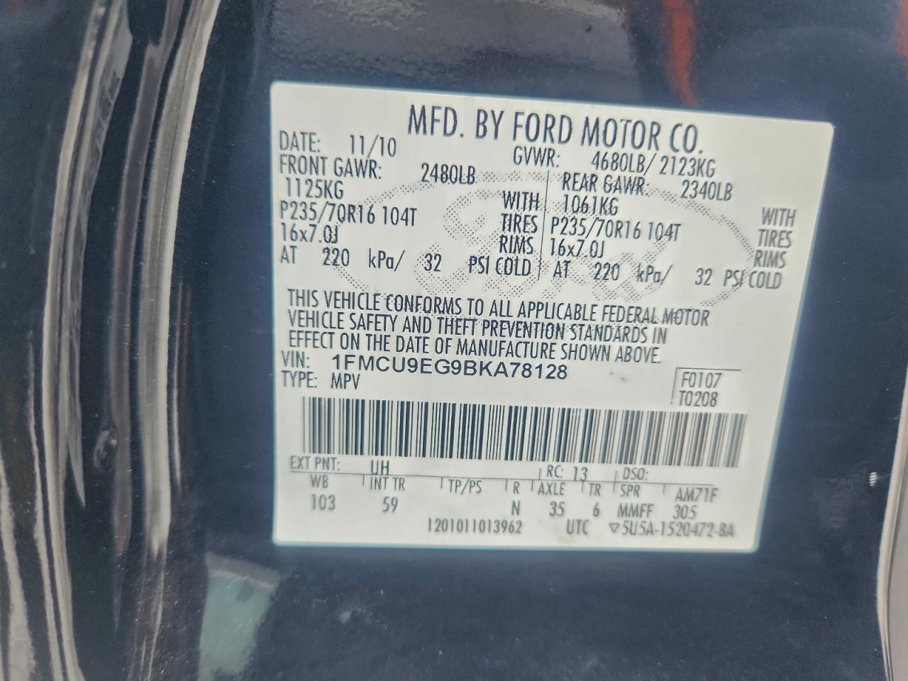 - ВИН: 1FMCU9EG9BK******