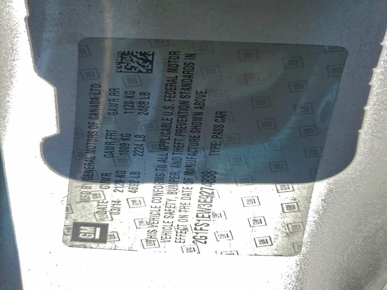 - ВИН: 2G1FS1EW3E9******