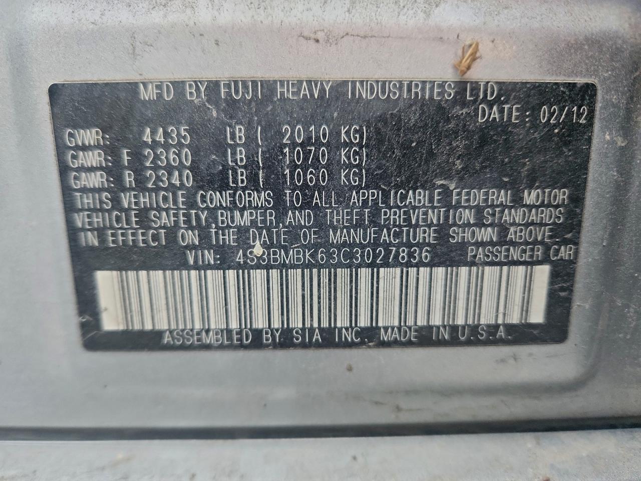 - ВИН: 4S3BMBK63C3******