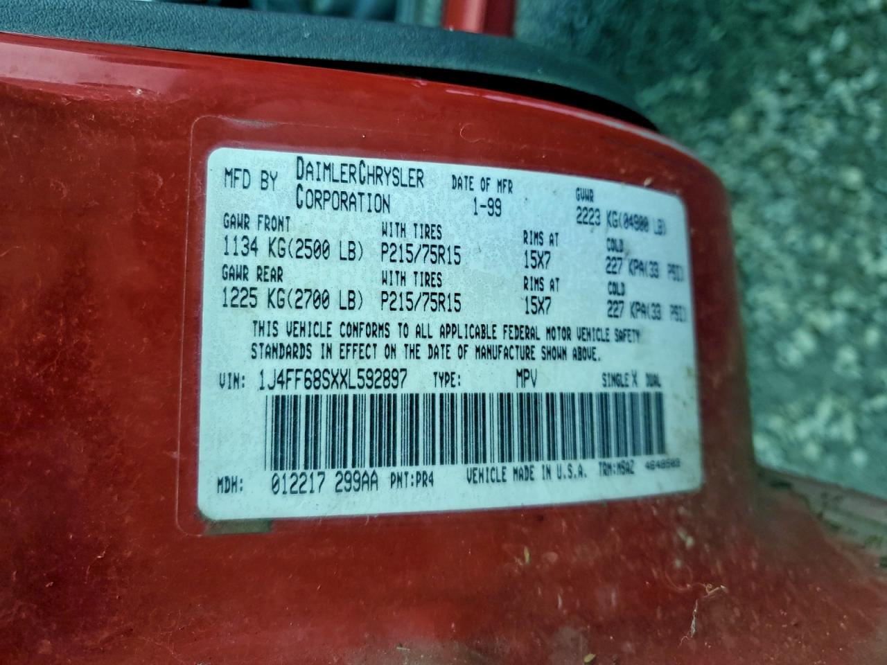 - ВИН: 1J4FF68SXXL******