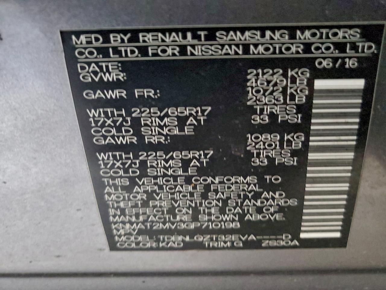2016 NISSAN ROGUE S