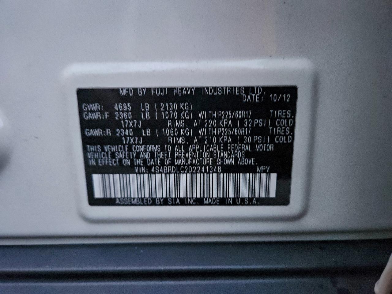 - ВИН: 4S4BRDLC2D2******