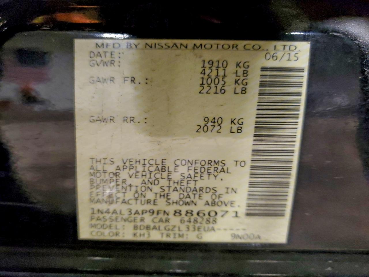 - ВИН: 1N4AL3AP9FN******