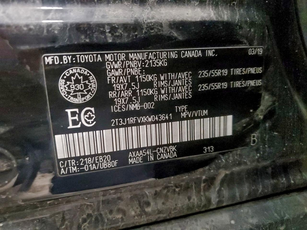 - ВИН: 2T3J1RFVXKW******