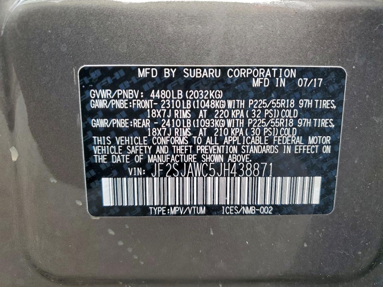 - ВИН: JF2SJAWC5JH******