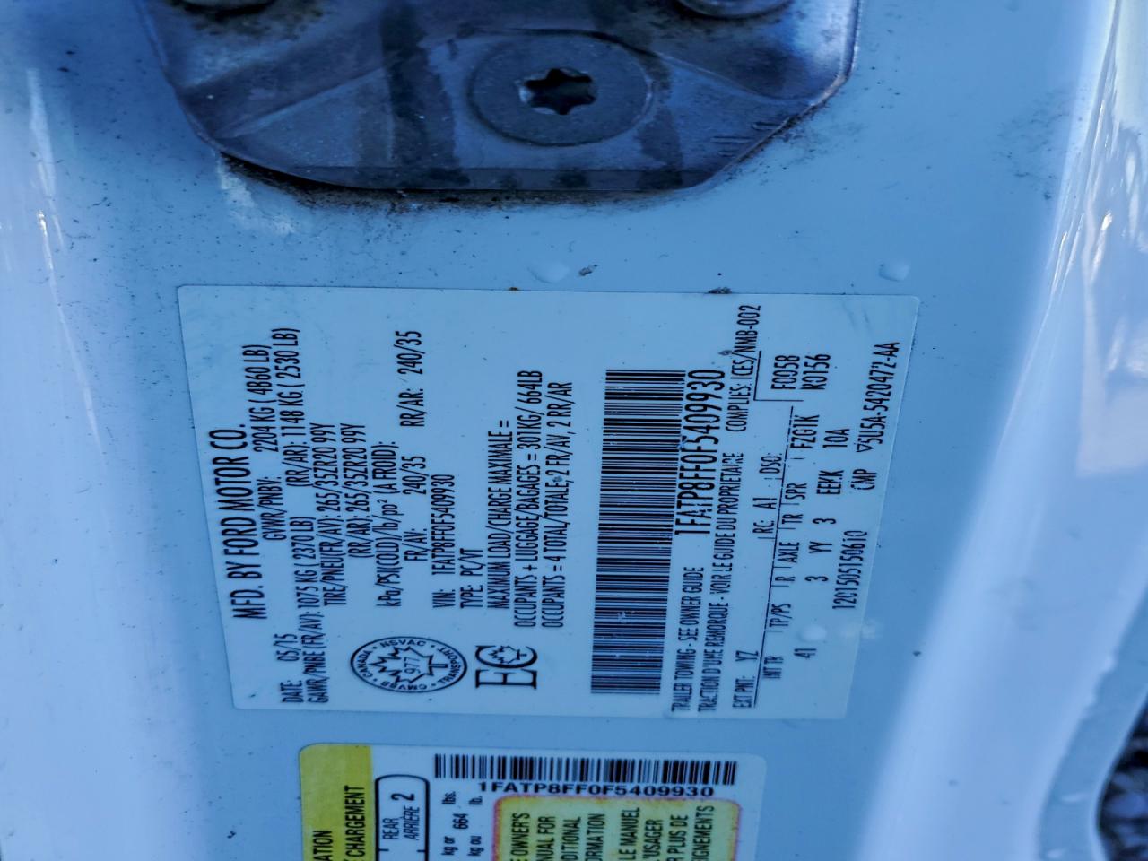 - ВИН: 1FATP8FF0F5******