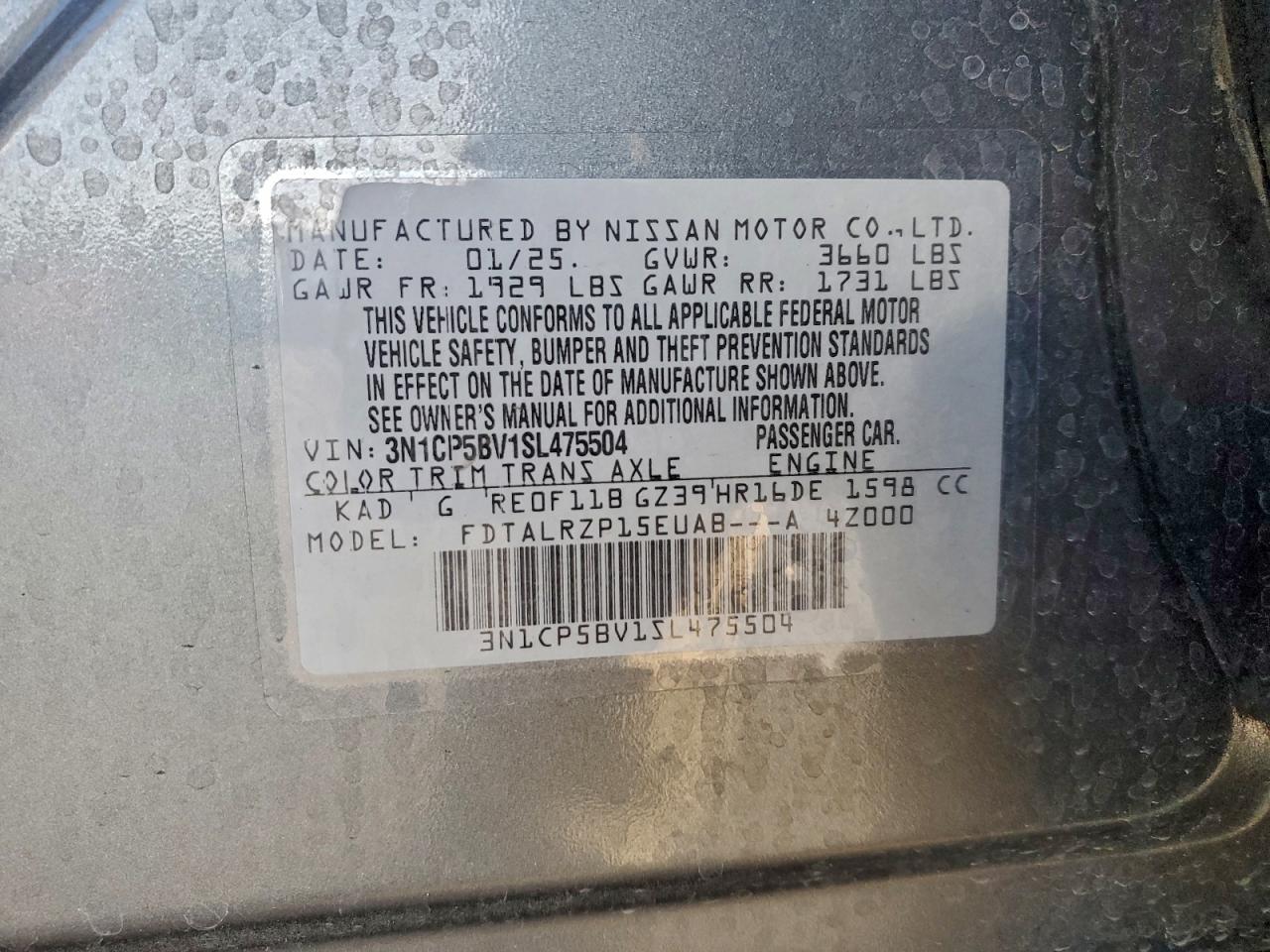 - ВИН: 3N1CP5BV1SL******