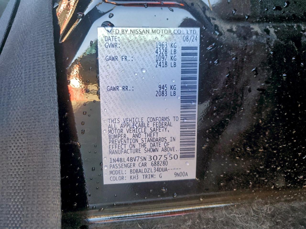 - ВИН: 1N4BL4BV7SN******