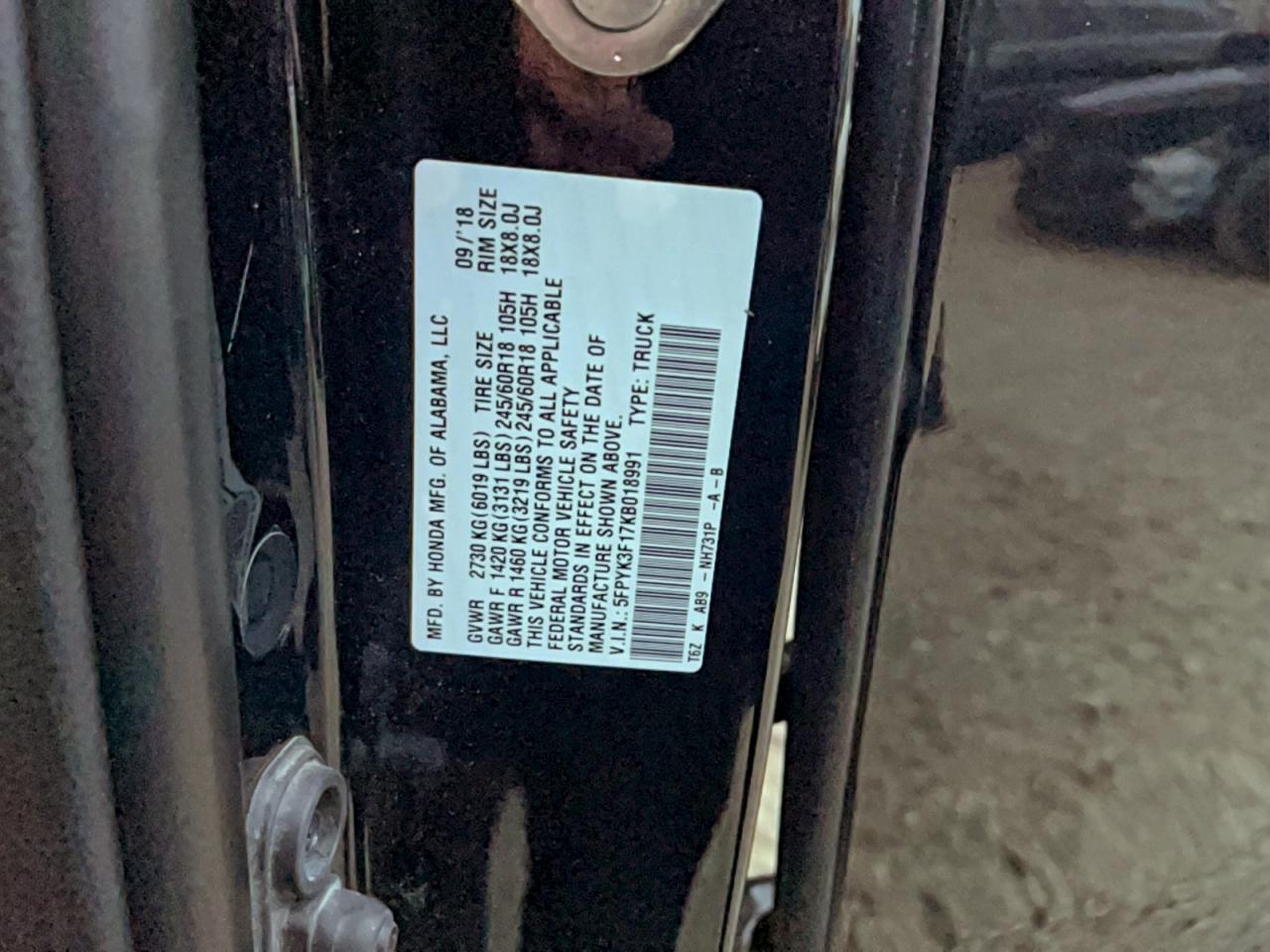 - ВИН: 5FPYK3F17KB******