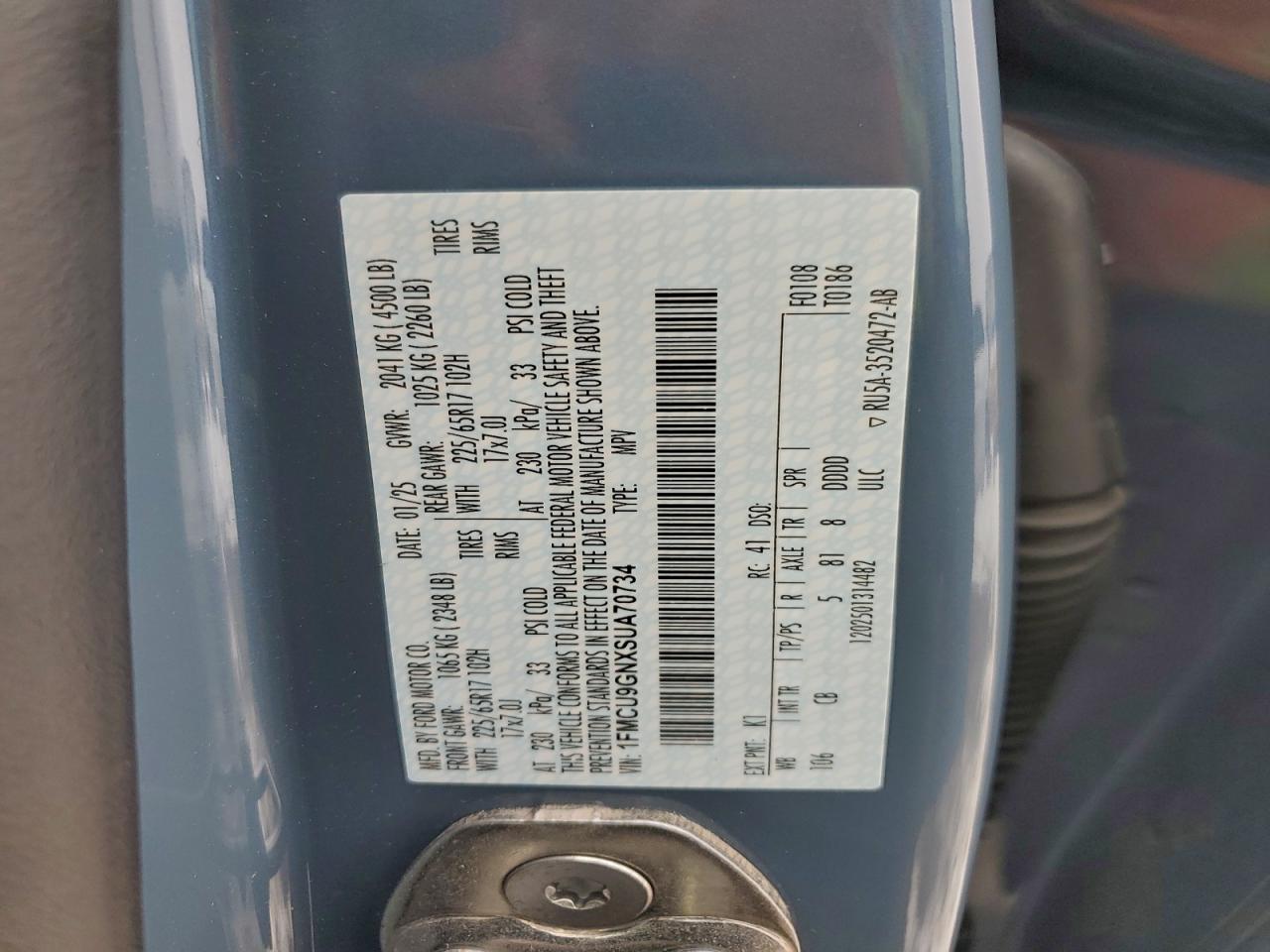 - ВИН: 1FMCU9GNXSU******