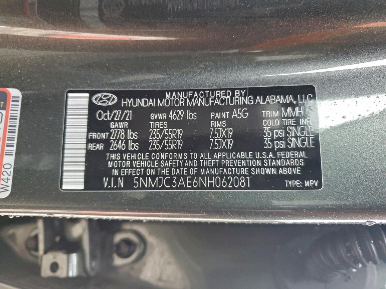 - ВИН: 5NMJC3AE6NH******