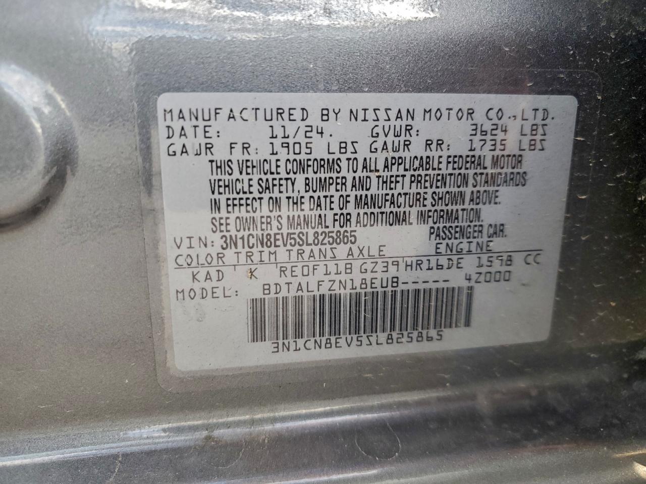 - ВИН: 3N1CN8EV5SL******