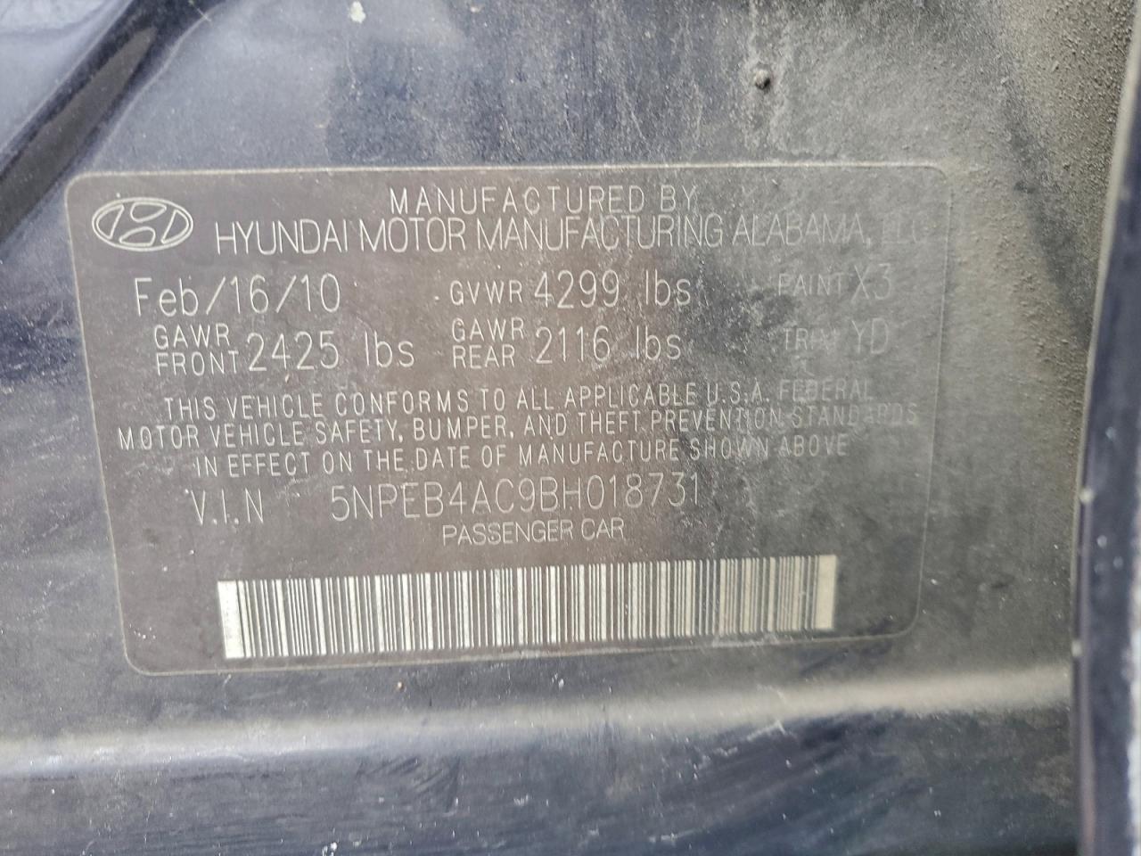 - ВИН: 5NPEB4AC9BH******