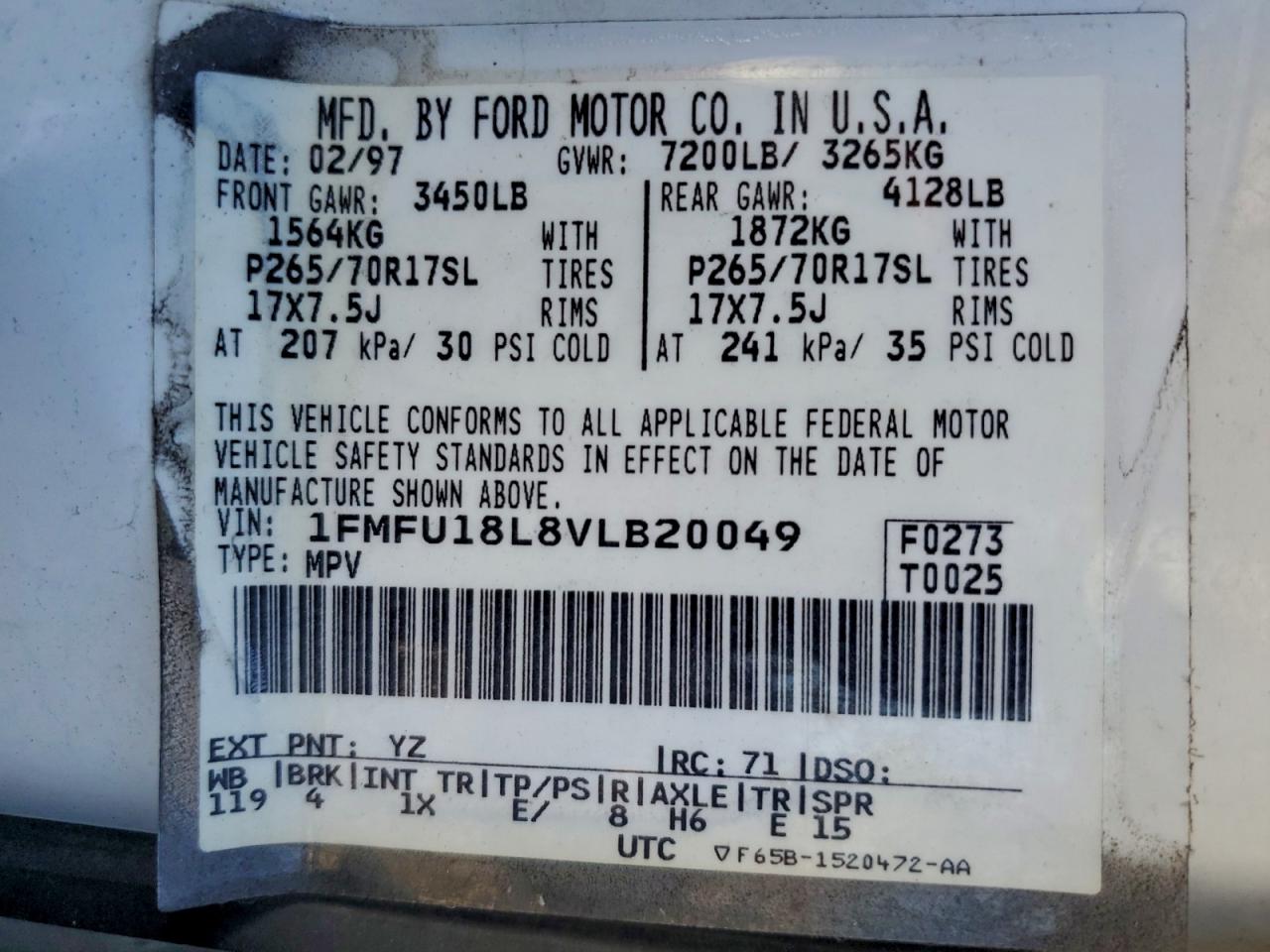 - ВИН: 1FMFU18L8VL******