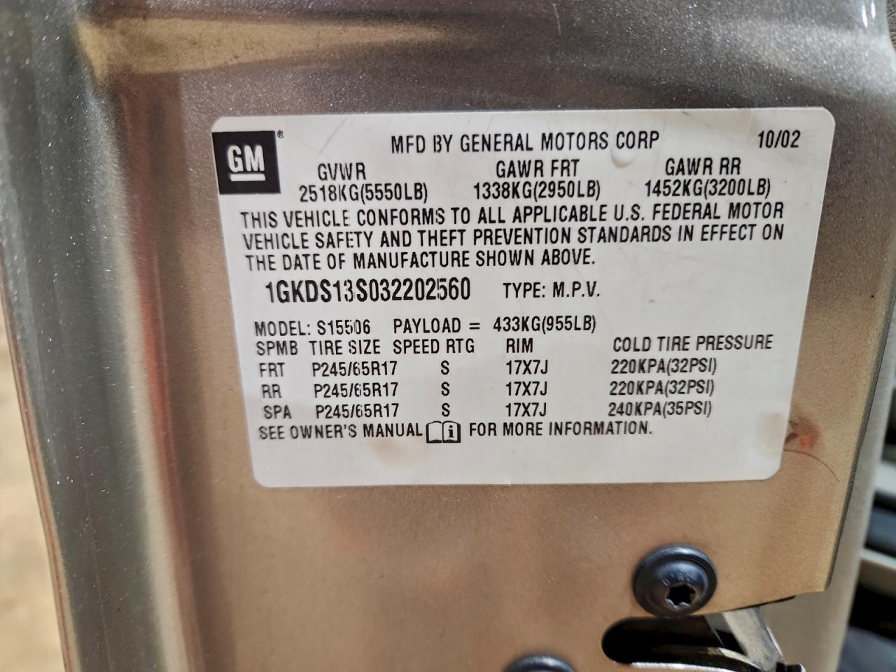 - ВИН: 1GKDS13S032******