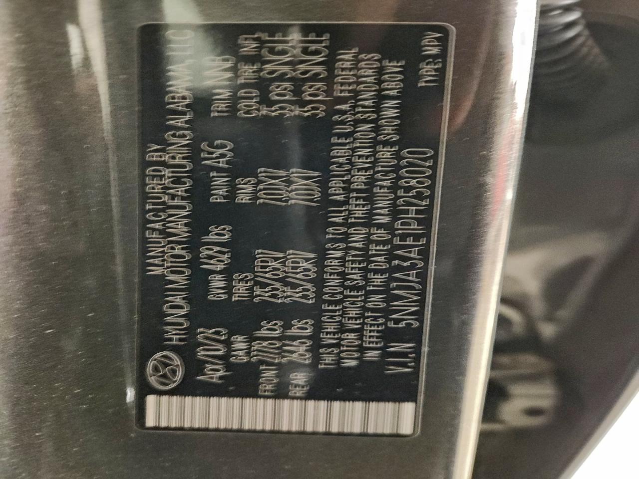 - ВИН: 5NMJA3AE1PH******
