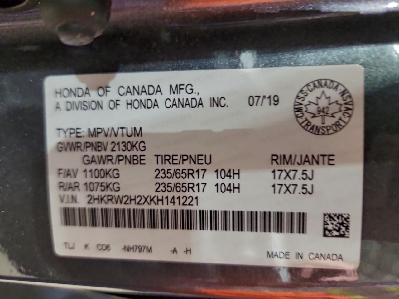 - ВИН: 2HKRW2H2XKH******