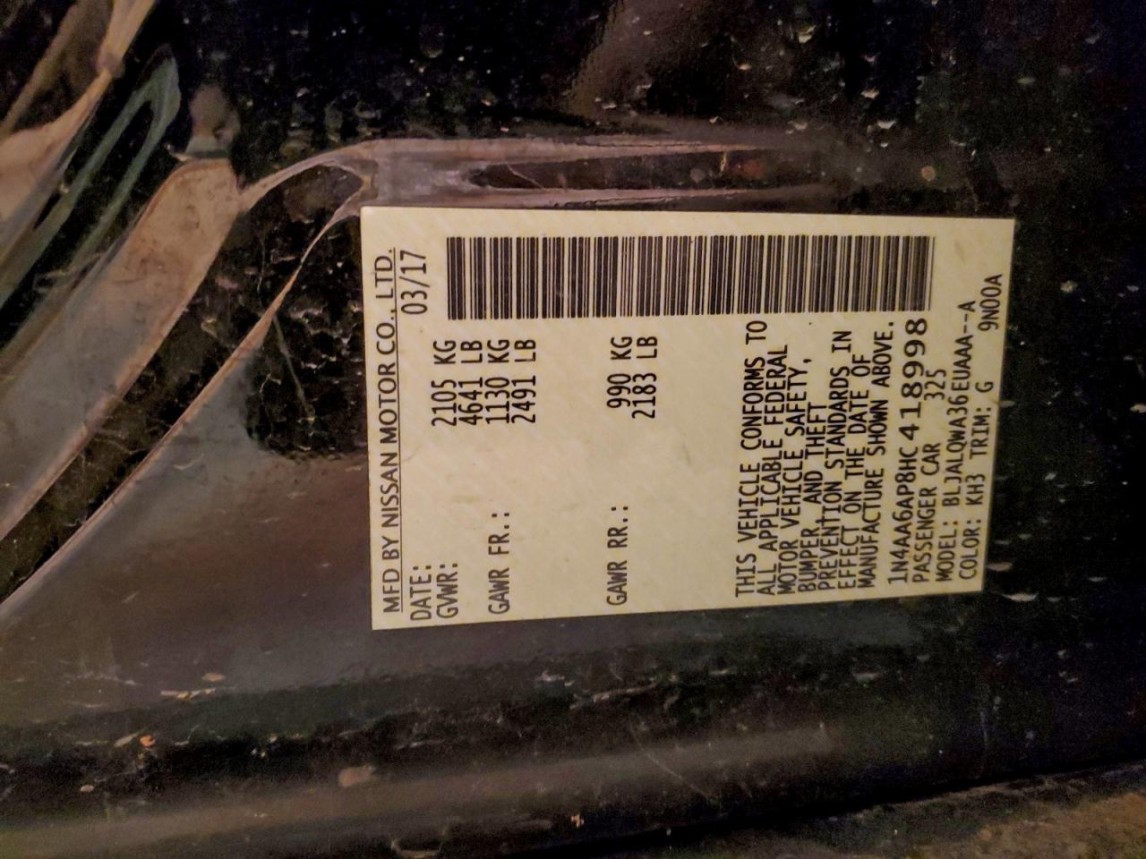 - ВИН: 1N4AA6AP8HC******