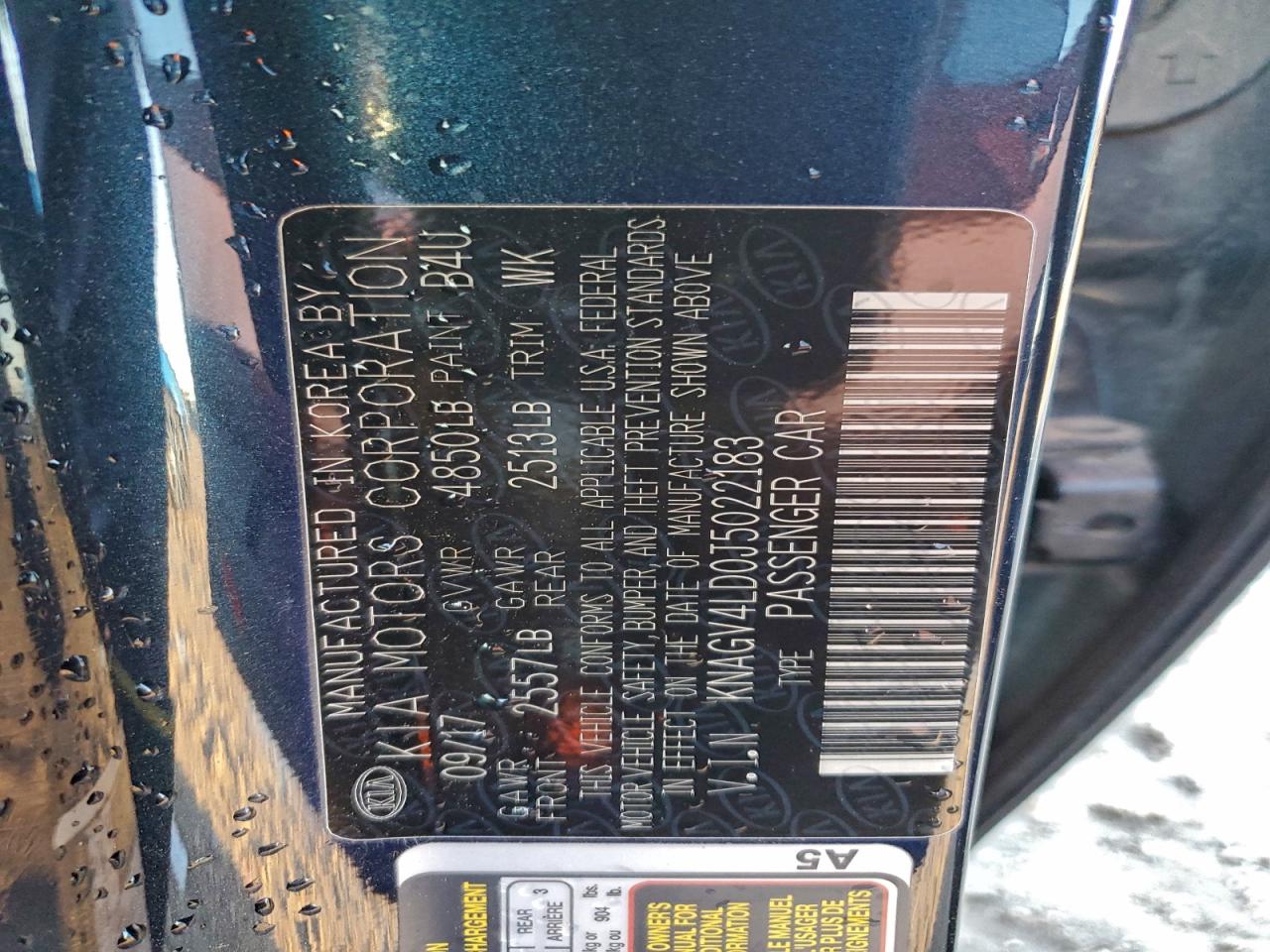 - ВИН: KNAGV4LD0J5******