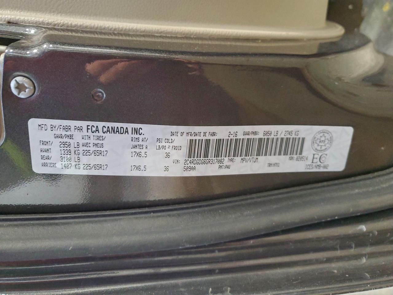 - ВИН: 2C4RDGDG6GR******