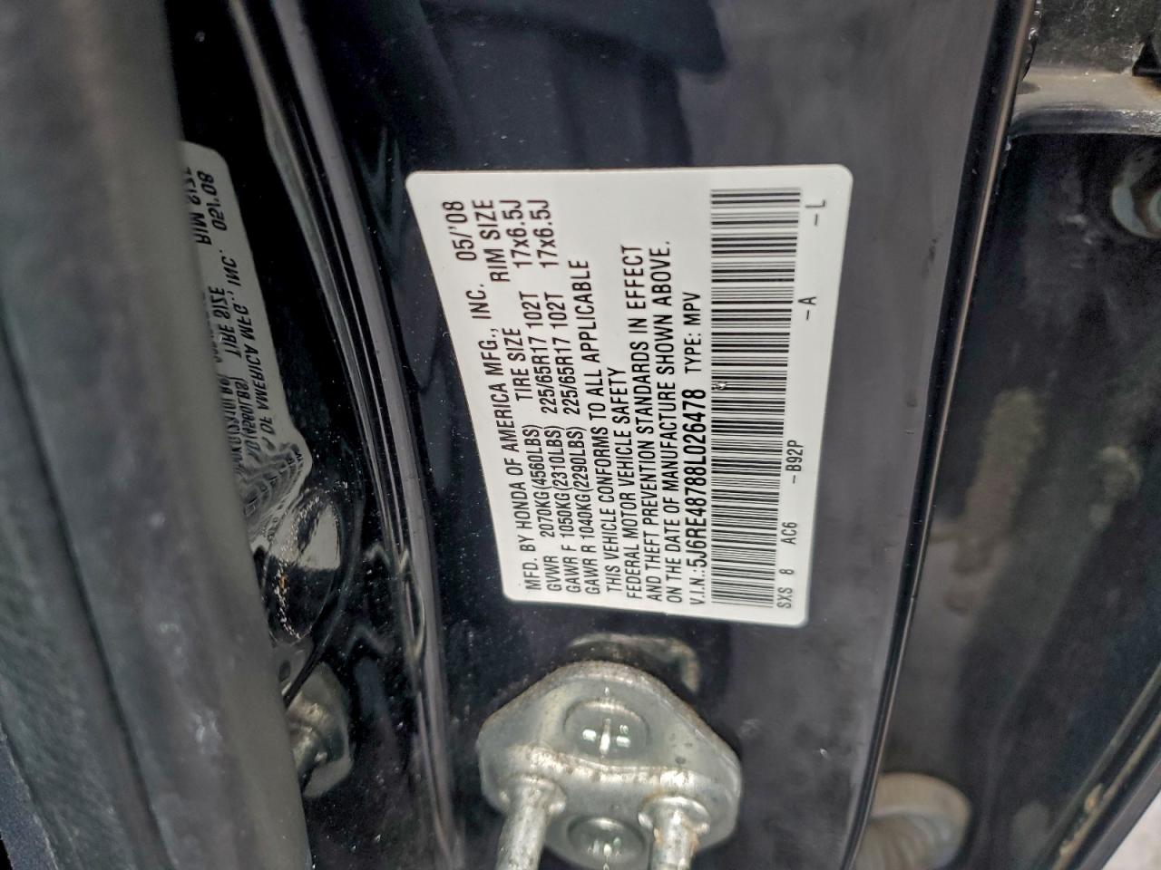 - ВИН: 5J6RE48788L******
