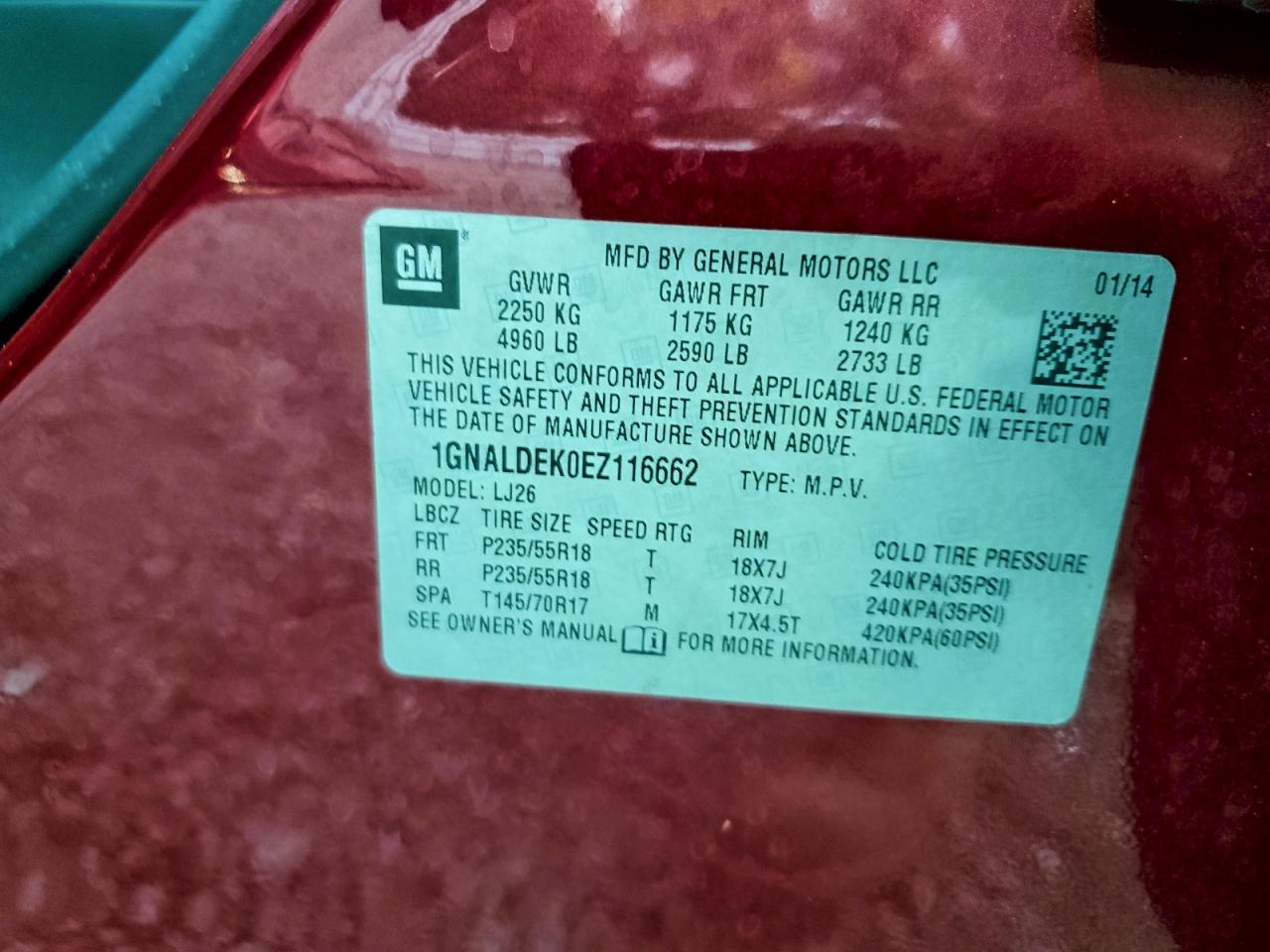 - ВИН: 1GNALDEK0EZ******