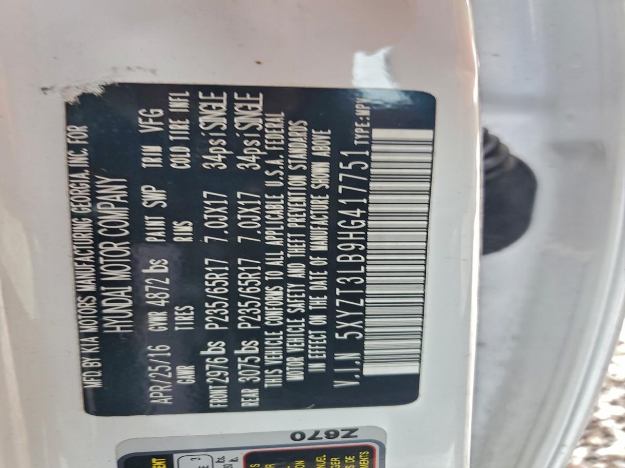 - ВИН: 5XYZT3LB9HG******