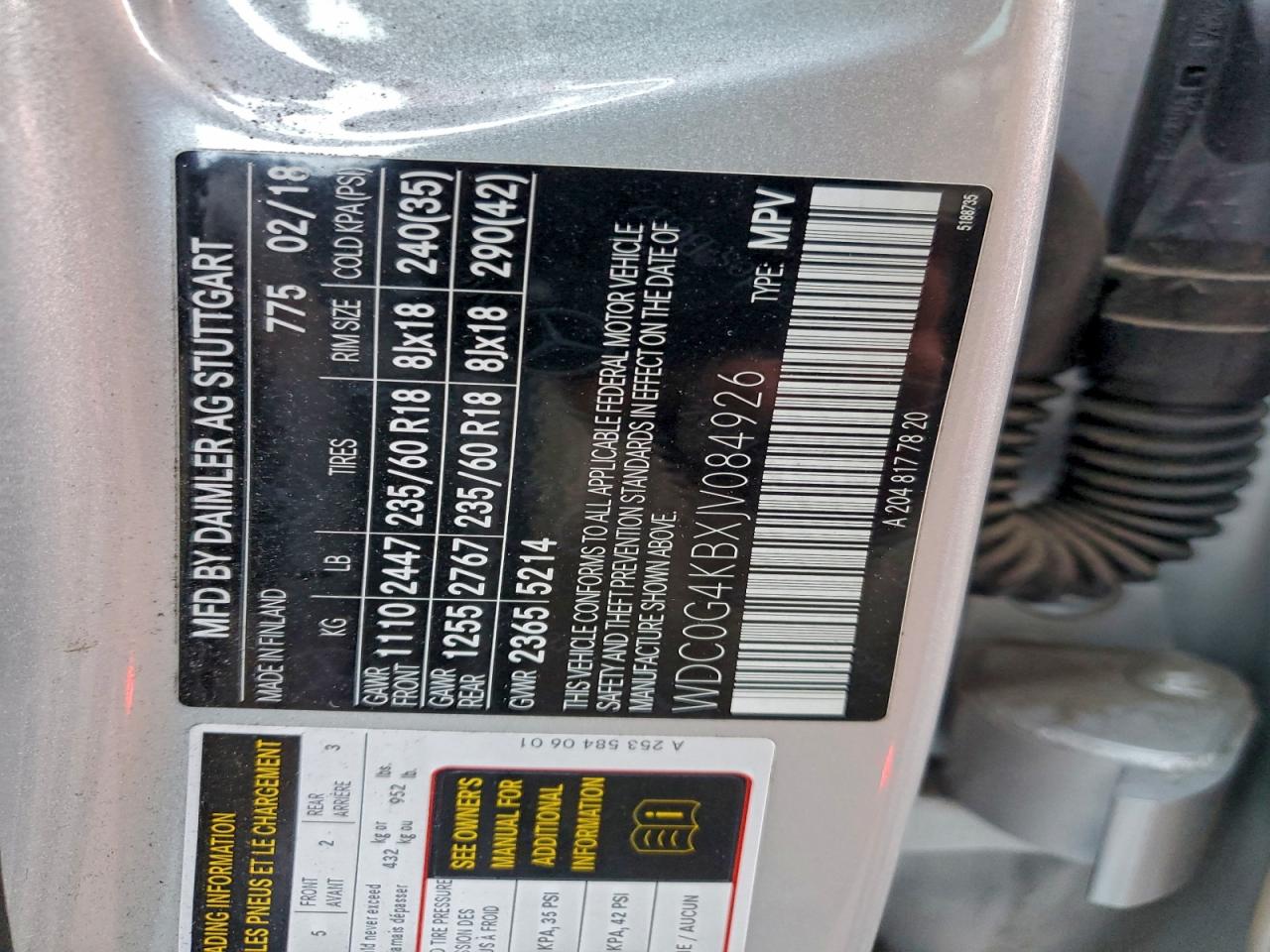 - ВИН: WDC0G4KBXJV******