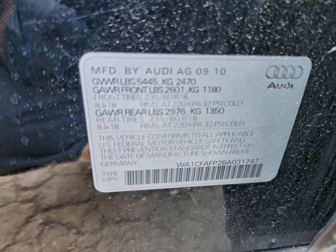 - ВИН: WA1CFAFP2BA******