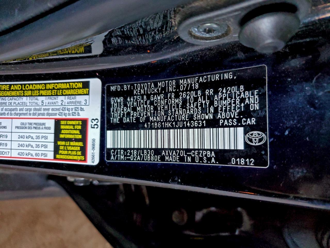 - ВИН: 4T1B61HK1JU******