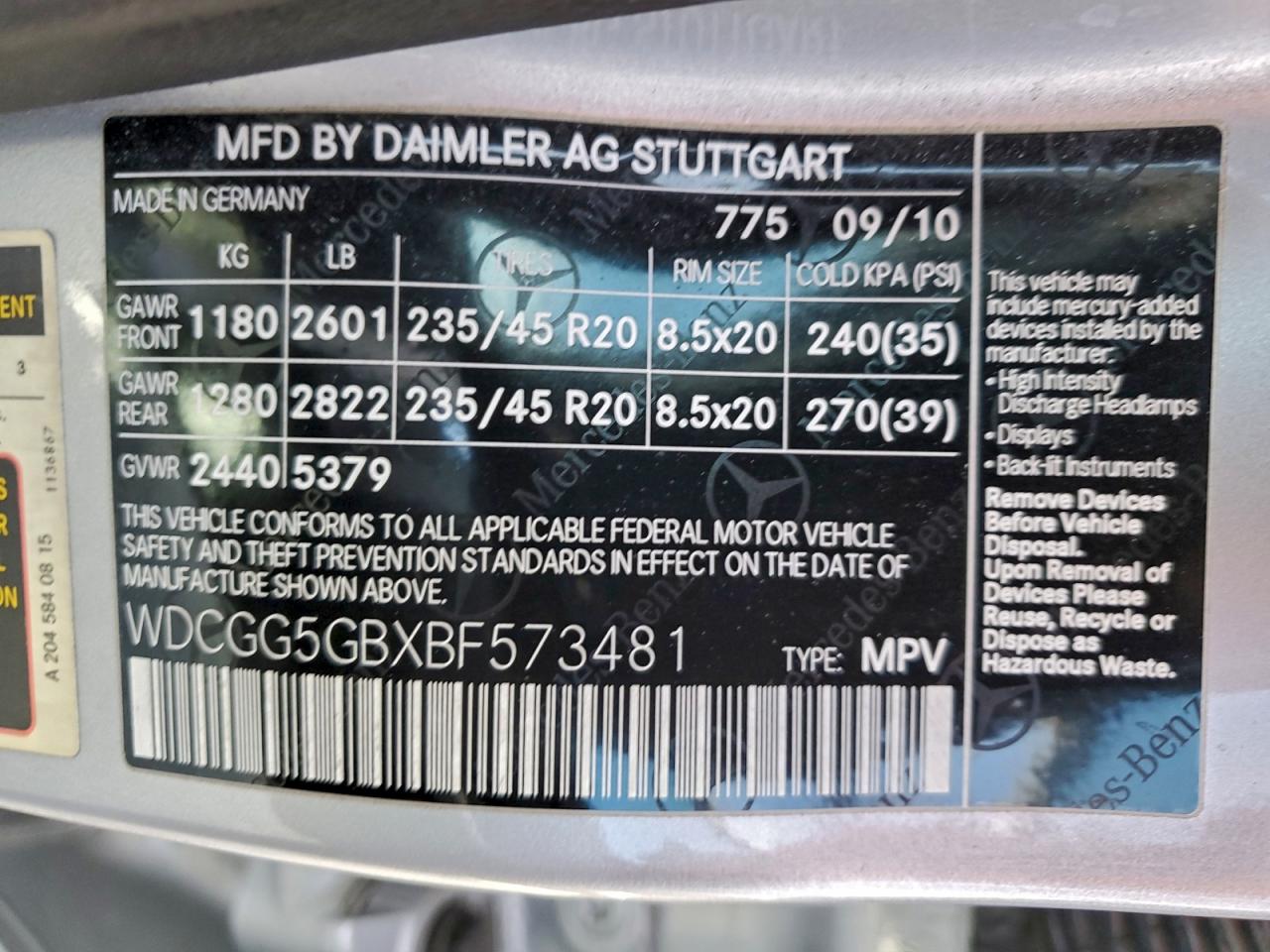 - ВИН: WDCGG5GBXBF******