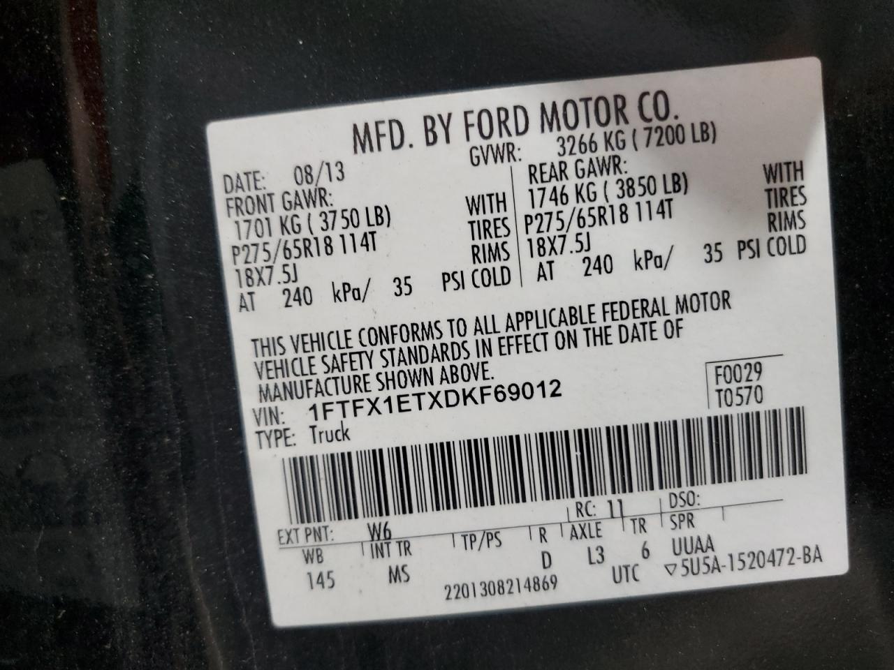 - ВИН: 1FTFX1ETXDK******