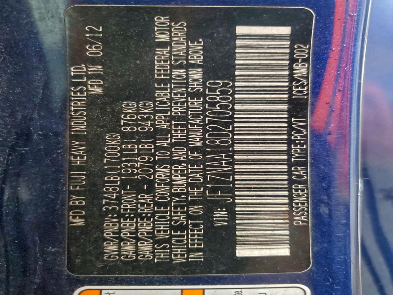- ВИН: JF1ZNAA18D2******