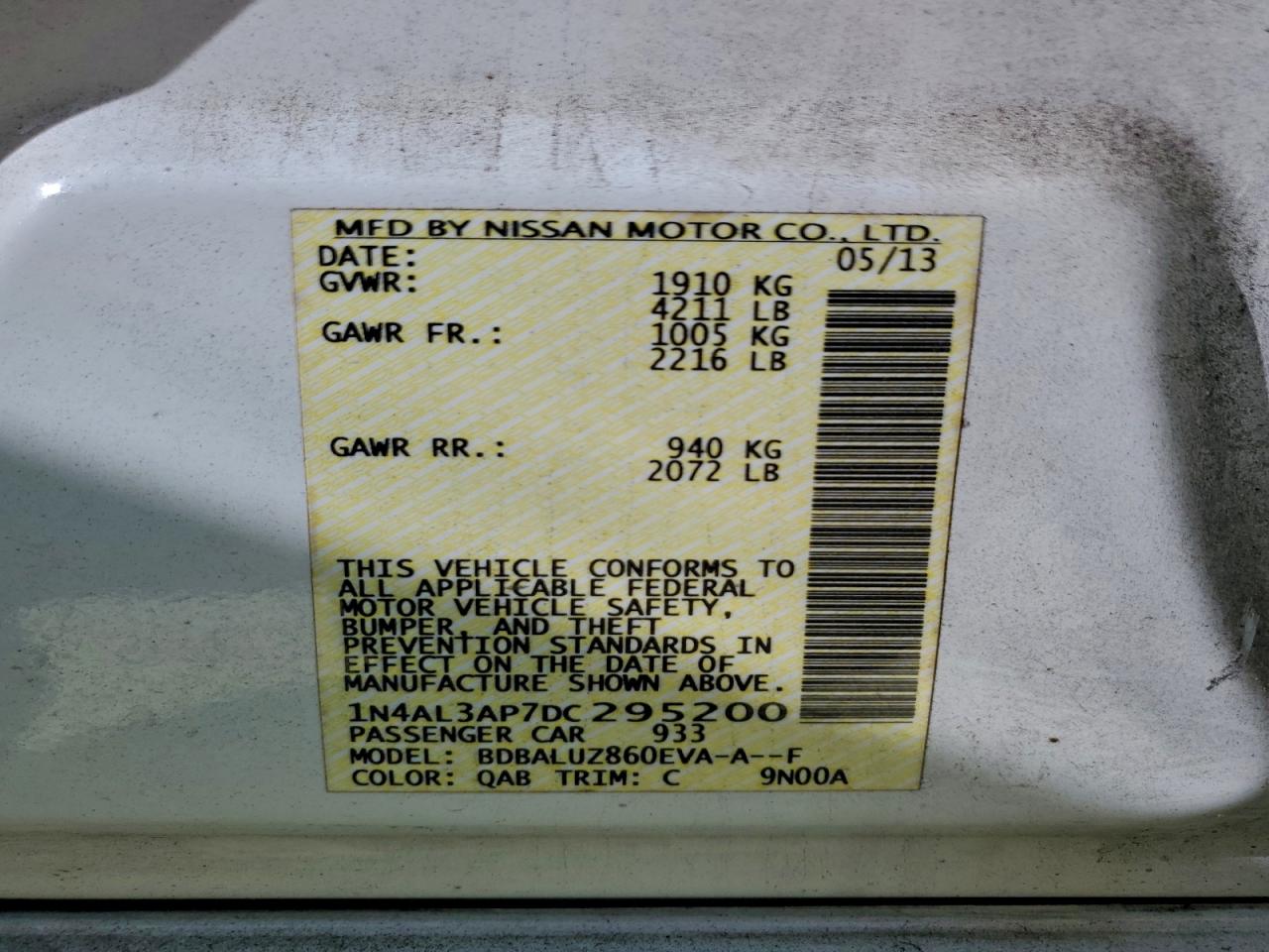 - ВИН: 1N4AL3AP7DC******