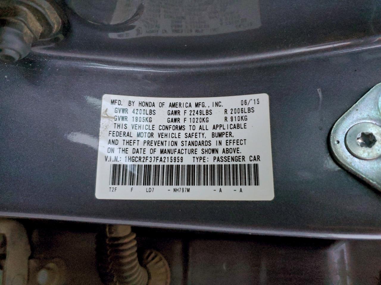 2015 HONDA ACCORD LX