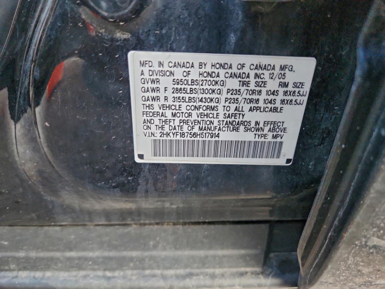 - ВИН: 2HKYF18756H******