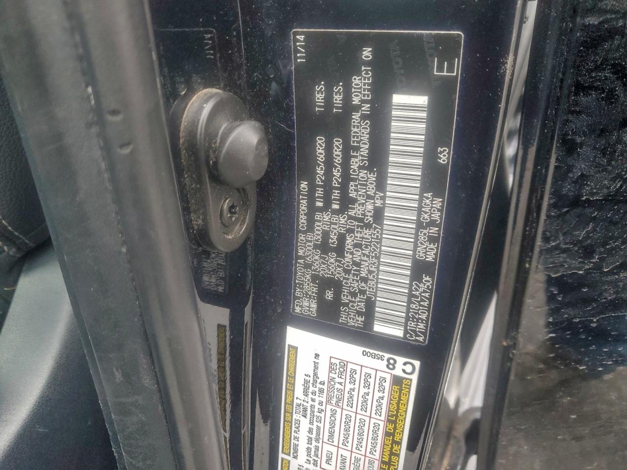 - ВИН: JTEBU5JR3F5******