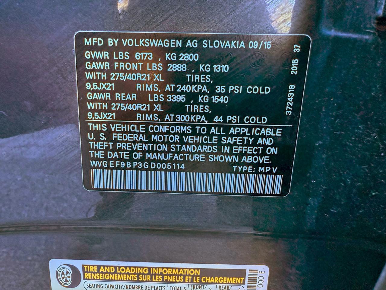 - ВИН: WVGEF9BP3GD******