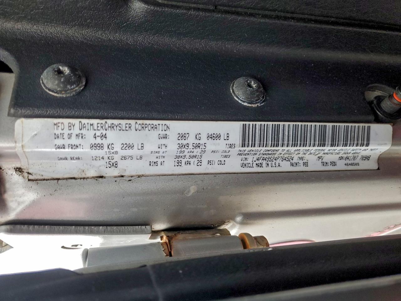- ВИН: 1J4FA49S24P******