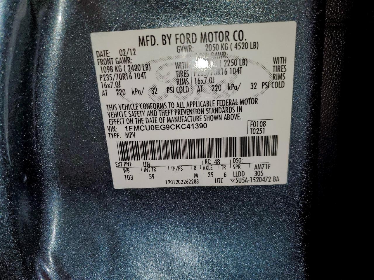 - ВИН: 1FMCU0EG9CK******