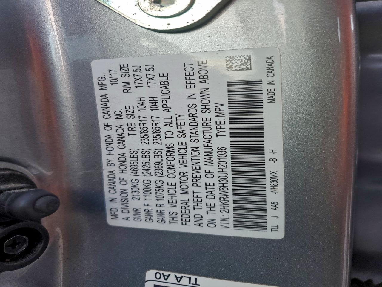 - ВИН: 2HKRW6H30JH******