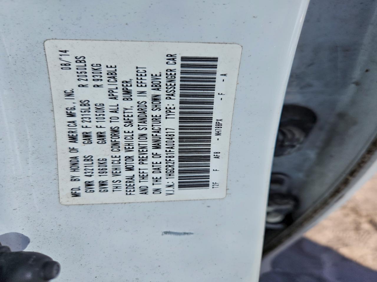- ВИН: 1HGCR2F81FA******