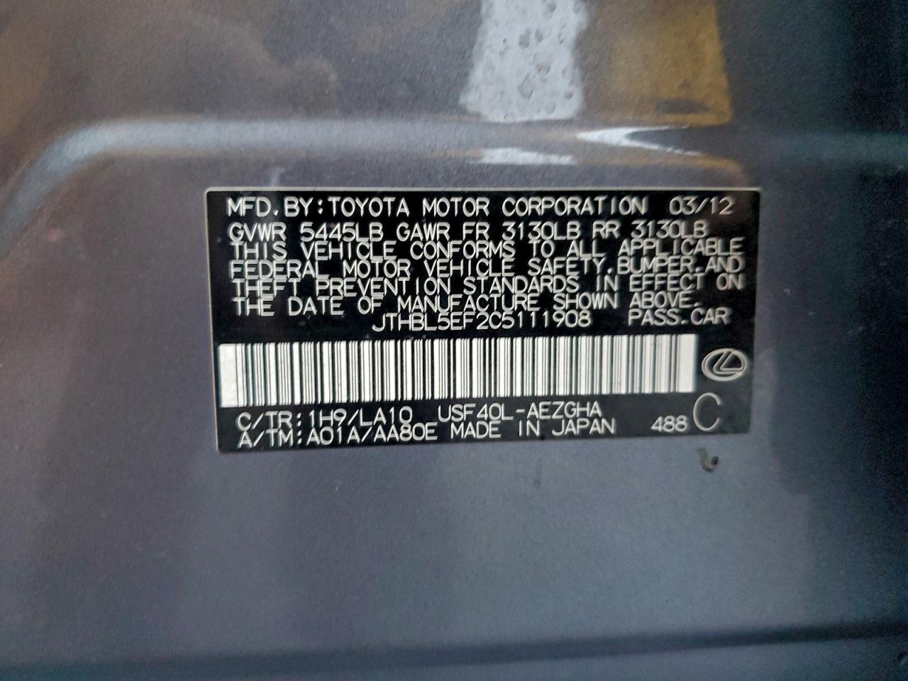 - ВИН: JTHBL5EF2C5******