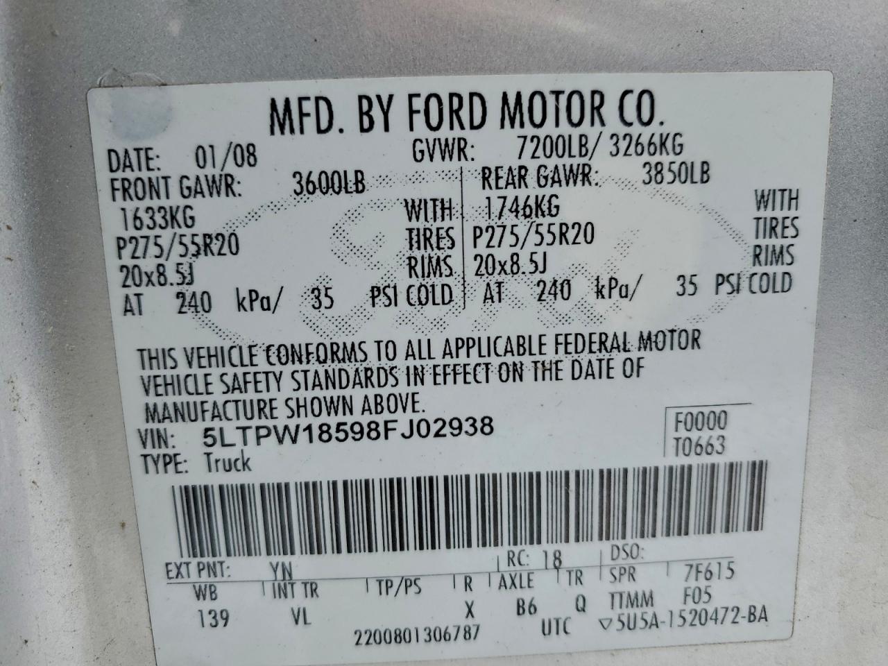 - ВИН: 5LTPW18598F******