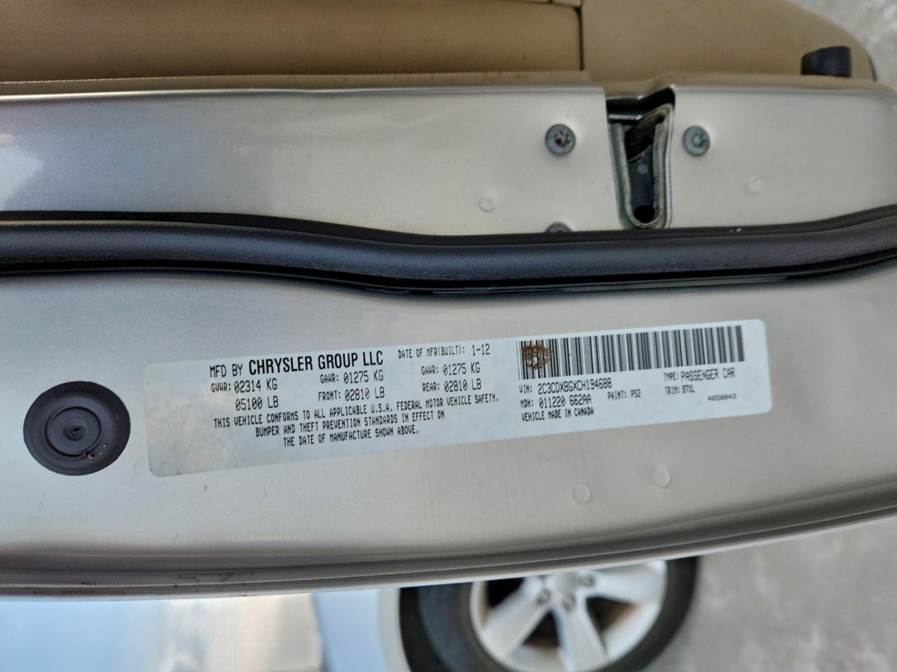- ВИН: 2C3CDXBGXCH******
