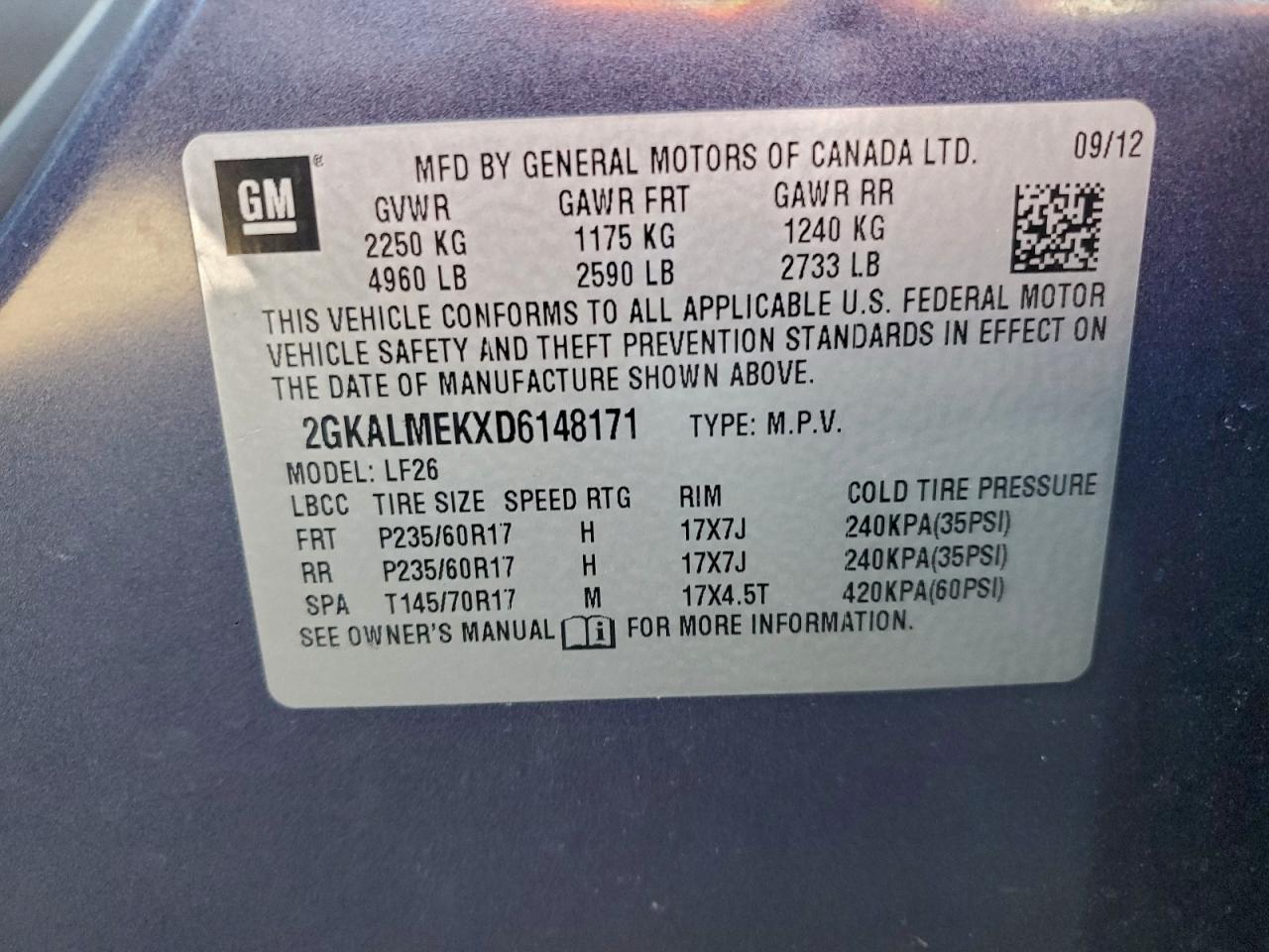 - ВИН: 2GKALMEKXD6******