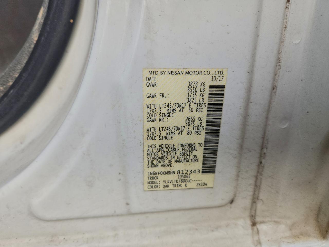 2017 NISSAN NV 1500 S