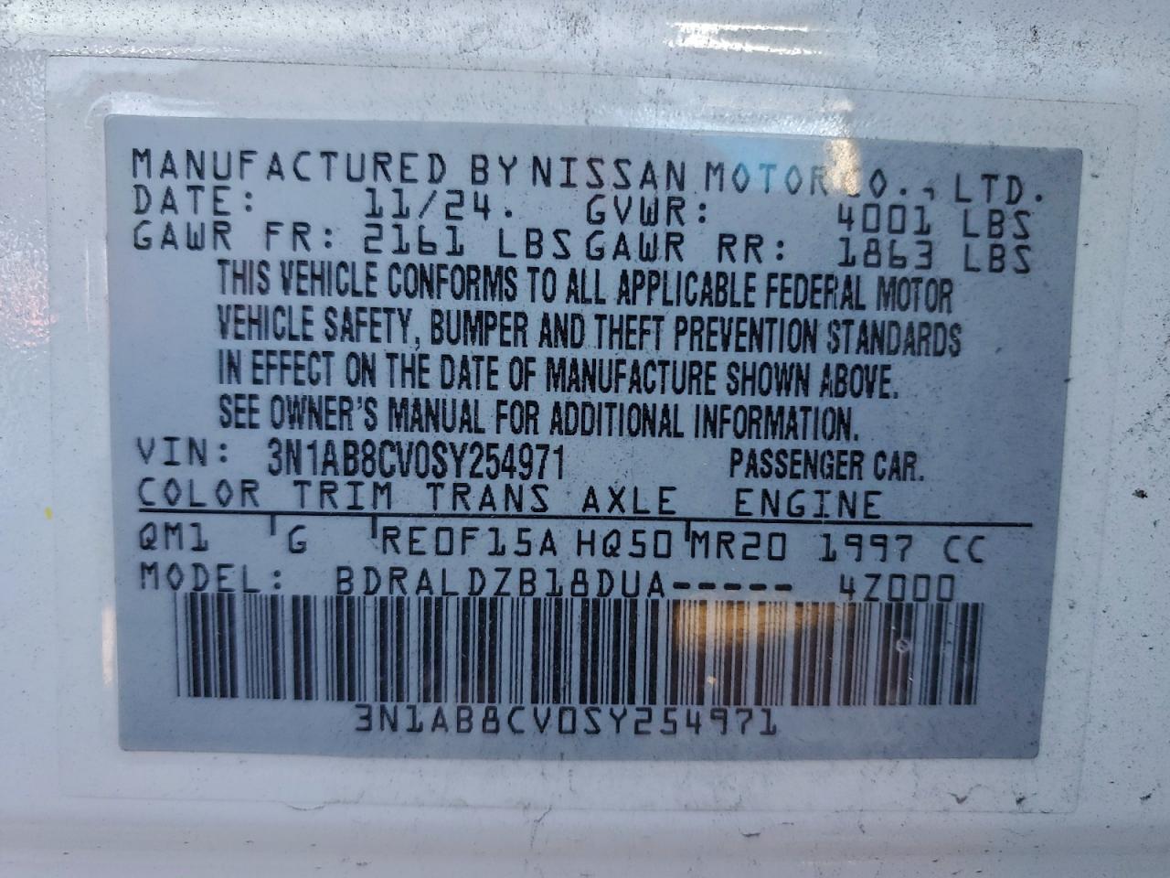 - ВИН: 3N1AB8CV0SY******
