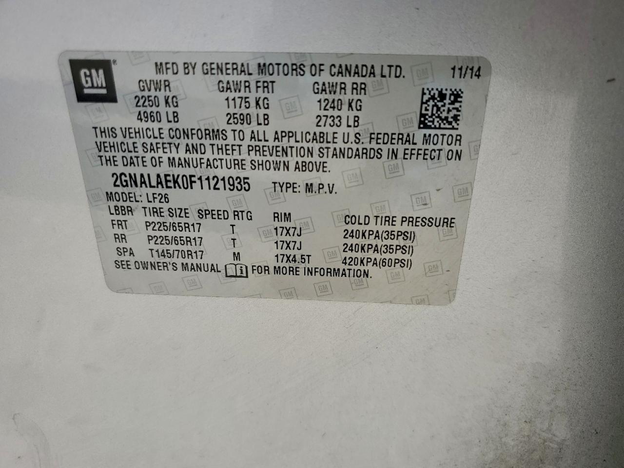 - ВИН: 2GNALAEK0F1******