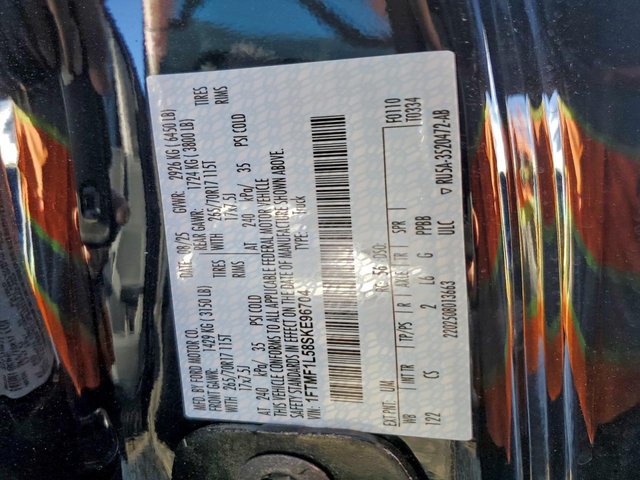 - ВИН: 1FTMF1L58SK******